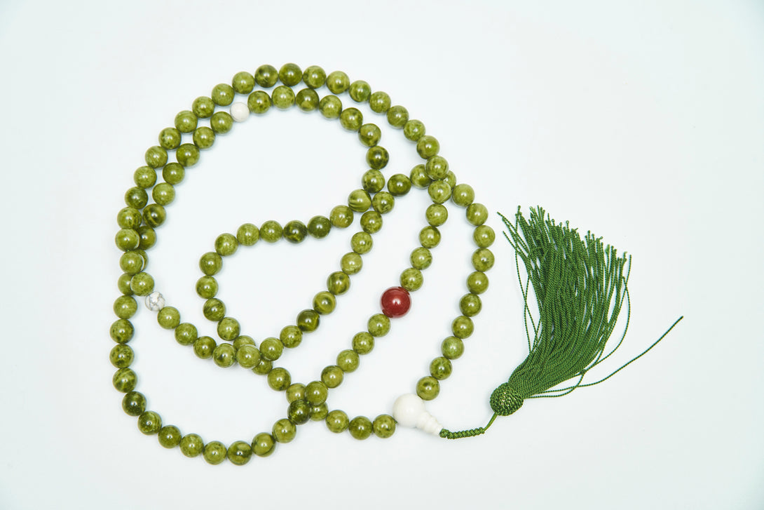 Green original stone with white tridacna ;white turquoise ; red agate Prayer beads