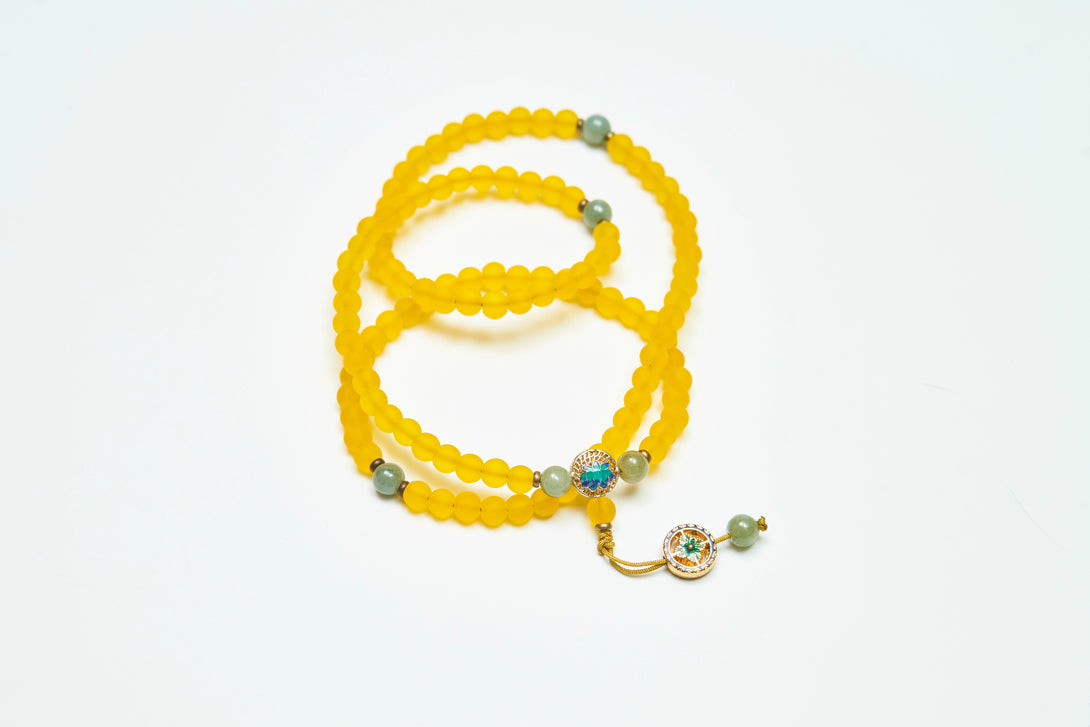 Design: Featuring agate and jade beads, accented with resin flowers and sterling silver charms, symbolizing wealth and protection